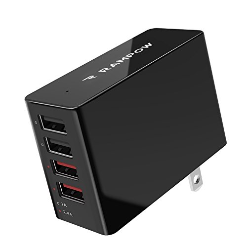 Cargador USB Multipuerto 4-Puertos Rampow® – GARANTÍA DE POR VIDA – EU / UK / US Universal Cargador Móvil para iPad, iPhone, Samsung Teléfonos Inteligentes y Tabletas y otros Dispositivos USB (Negro)