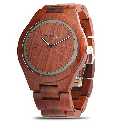 Reloj de madera Wonbee para hombres y mujeres-Artesanía hecha a mano relojes de madera-banda de madera del reloj –bisel de madera- reloj de pulsera de ébano- serie ROCOSEUM